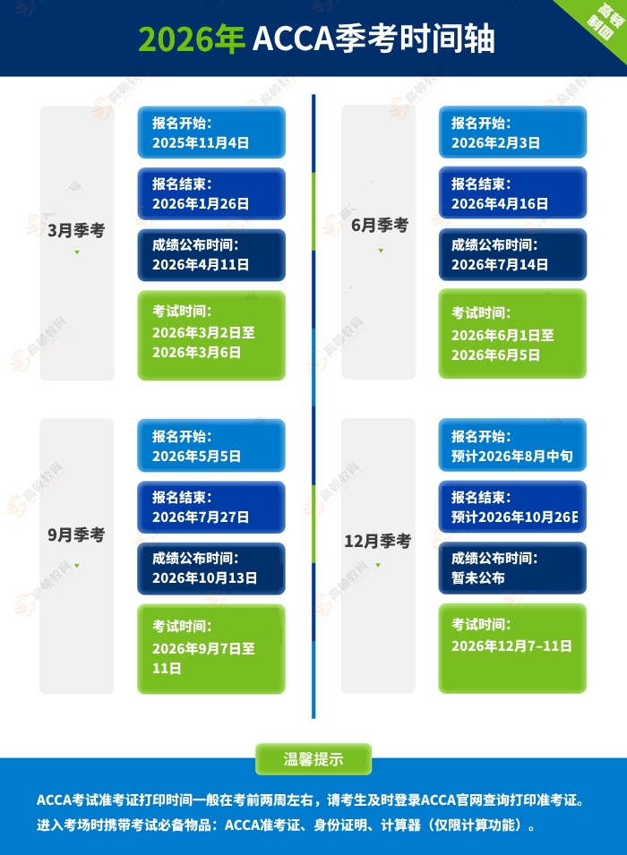 这意味着,如果你想参加6月的考试,最晚需要在2026年4月16日前完成报名和缴费。其他考季的报名时间也遵循类似的提前模式,例如9月考季的报名在2026年5月5日左右开启。考生需要提前在ACCA官网查询具体日期。